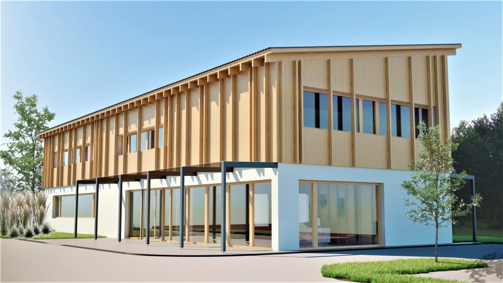 In the new multi-purpose building, 4 classrooms and auxiliary accompanying rooms are planned, with a total area of 530 m2. The basic construction will be made of wooden cross-laminated Xlam elements. The construction of an almost zero energy facility is planned. Currently, sewerage is being carried out under the building and reinforced concrete works.