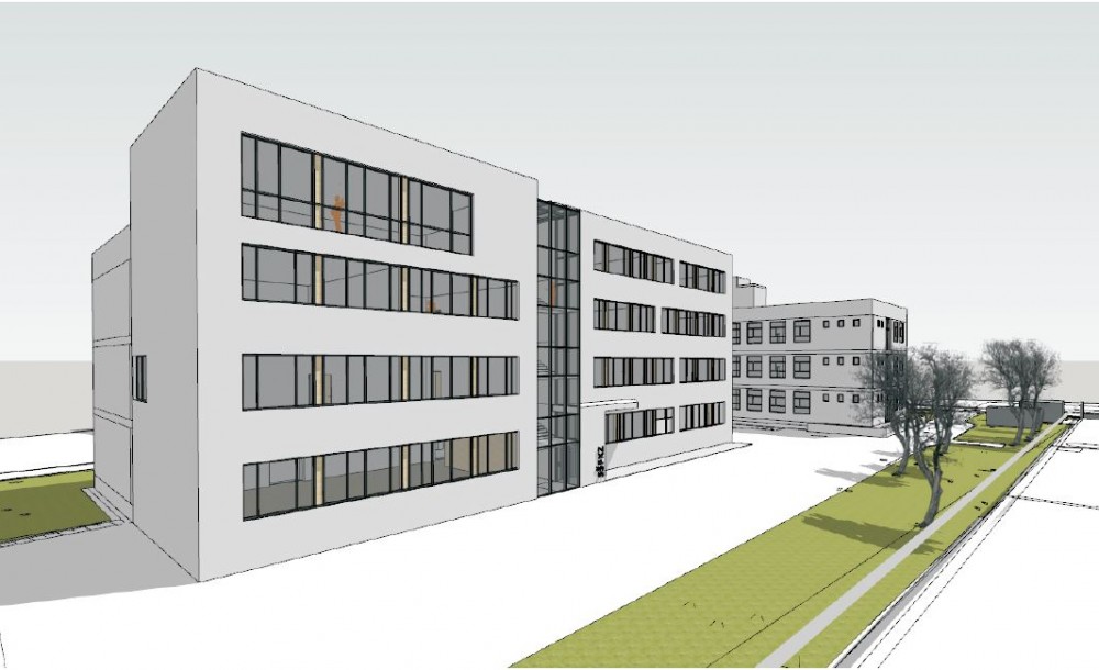 As part of the construction, a new extension with a total area of 1,712 m2 is planned, which will be built on five floors. The extension will be built with a vertical communication core with a lift. In addition to the extension, the company VG5 will add a new staircase, entrance, connecting part and arrangement of the yard. A glass roof is provided above the connecting element. For the needs of the new extension, the company VG5 will demolish a part of the building, namely a two-storey building with basement.