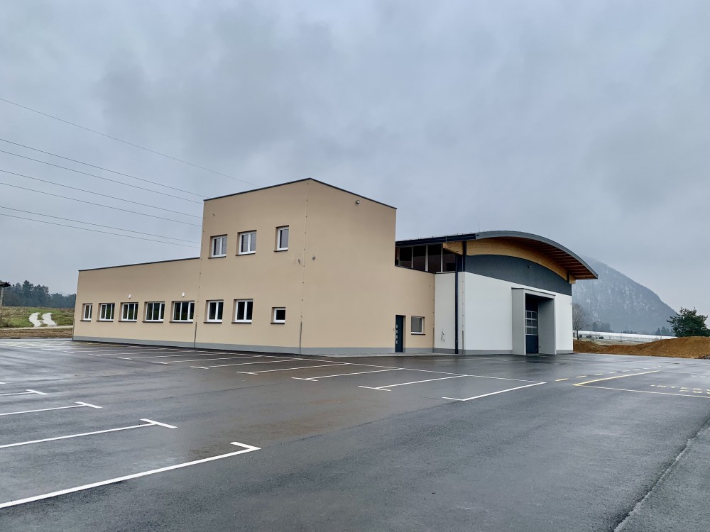 27. Mar 2023The fire station is on the ground floor, except for the corner part where there will be an additional floor with rooms for administration and storage. The facility is designed as a free-standing building with an articulated floor plan, covered by a single roof in the shape of a wave, representing a large garage space, and a flat roof above the administrative part. The building was built massively with a reinforced concrete foundation slab. The garage part and the canopy are built skeletally with reinforced concrete point foundations, foundation tie beams, monolithic columns, AB beams and roof wooden glued primary and secondary glued beams. The facade envelope of the building is a contact facade. We also carried out the external arrangement, which is completely asphalted, including all communal water connectors.
